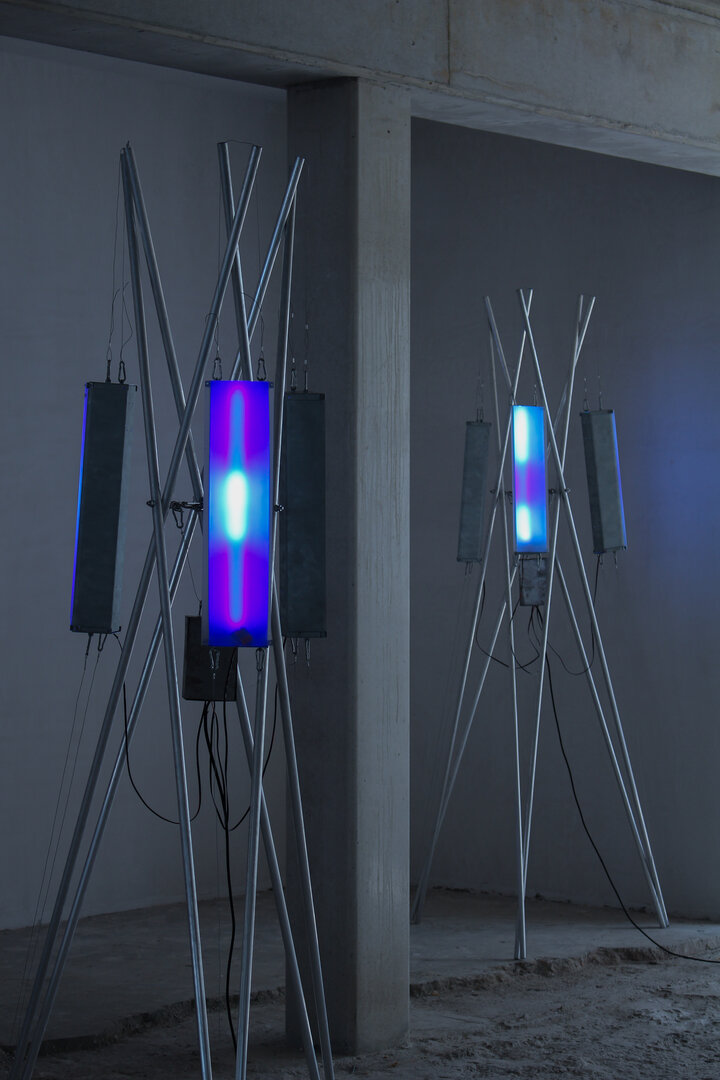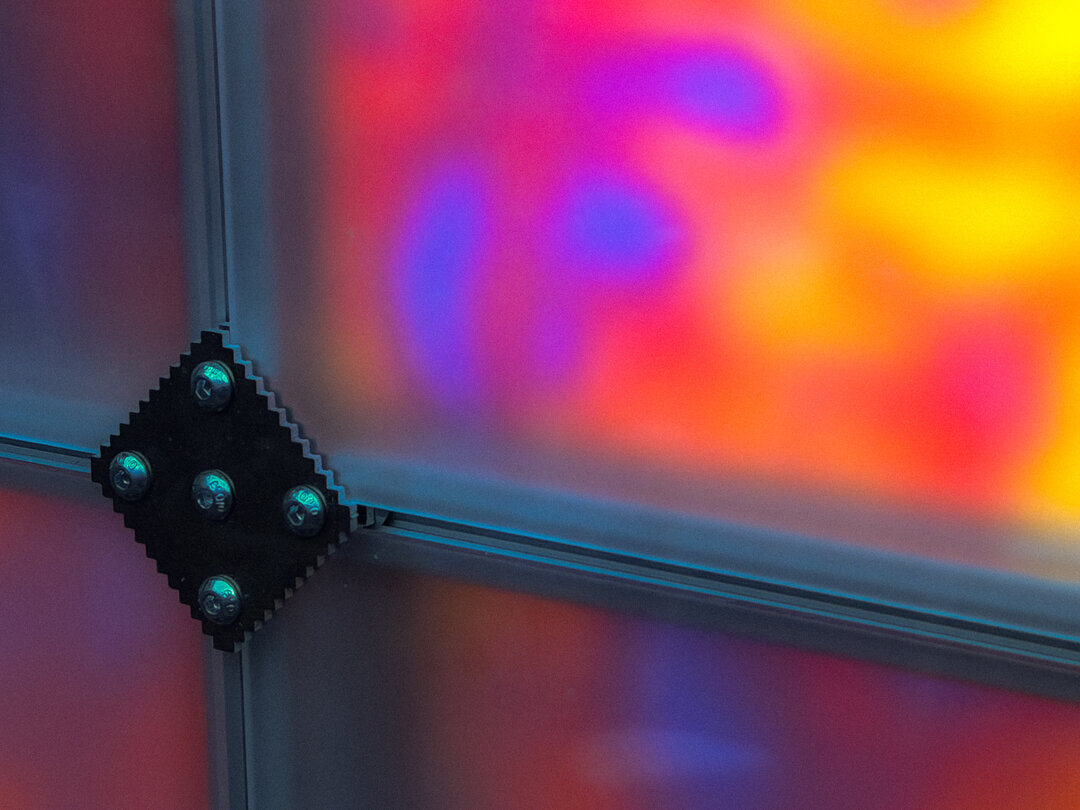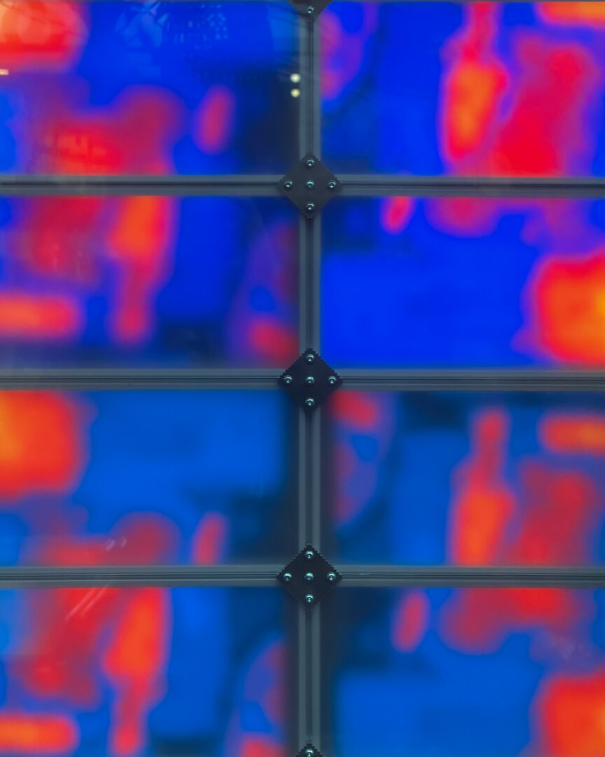 Dancing Fragments is a sculptural audiovisual installation inspired by Nijmegen’s queer house and techno scene, using the legendary Extravaganza party as a starting point. Archival material from co-founder Jeroen Roording informed a self-built generative system where infrared images fade, distort, and fragment across LED matrices, speaker modules, and semi-transparent panels, creating a layered, abstract memory that evokes the fleeting freedom, collectivity, and atmosphere of queer nightlife.